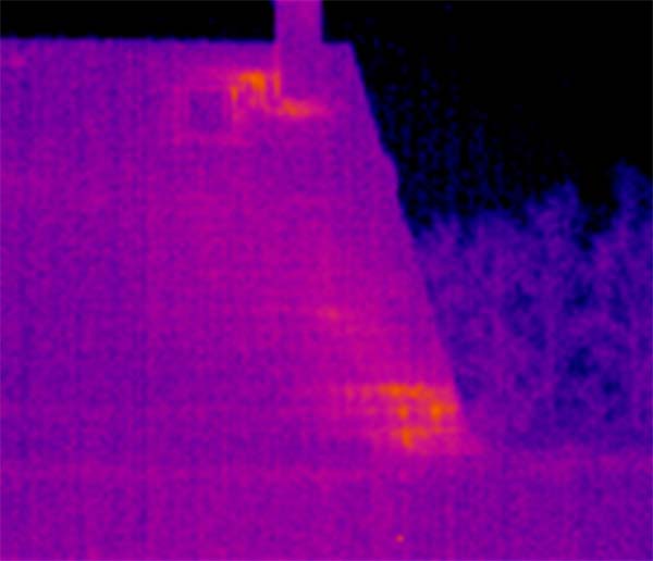Die Wärmeverluste über Wände, Decken und Dächer können zwar nicht als messbare Größe dargestellt werden, jedoch kann anhand der Helligkeit und der Farbe der Energieverlust sichtbar gemacht werden.